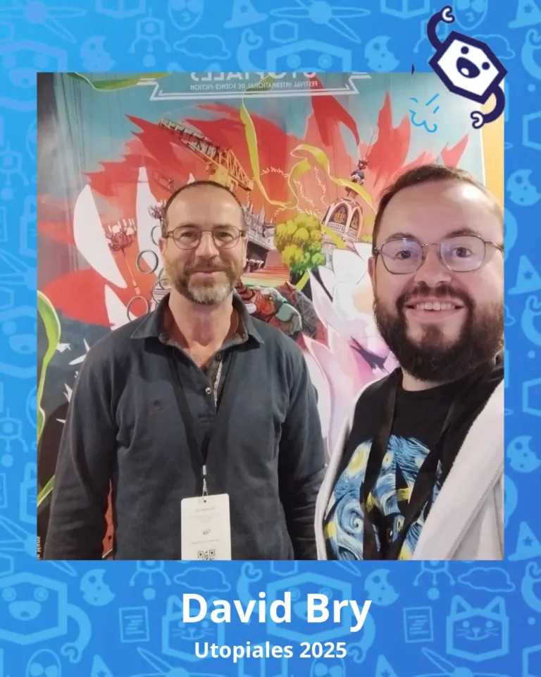 Bonjour à toustes ! Allez, continuons sur l’avant-dernière interview des Utopiales 2025. Cette fois, c’est David Bry qui s’est collé à l’exercice. C’était un moment formidable, je ne vous le cache pas. David est passionnant à écouter autant qu’à lire…